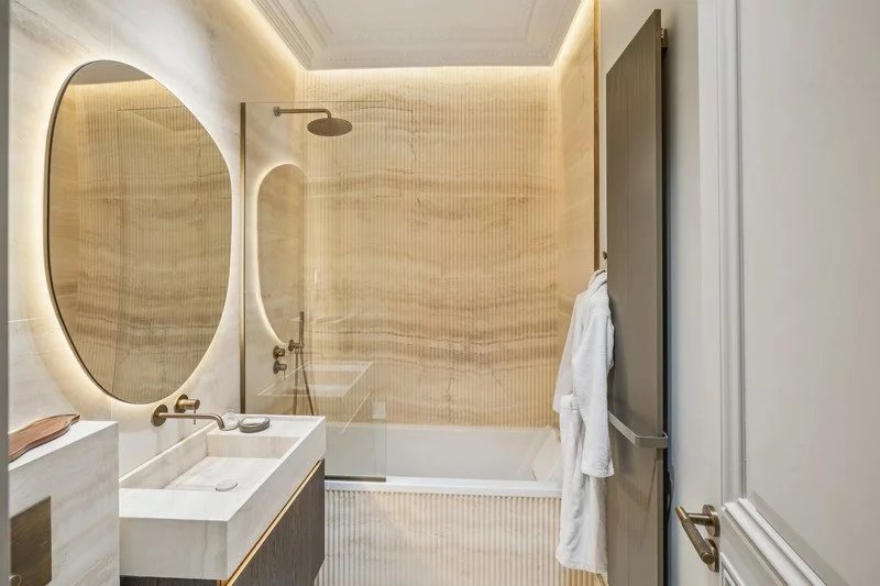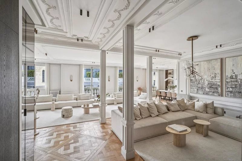 Au 5ᵉ étage d’un immeuble de grand standing, cet appartement de 215 m² a été entièrement repensé et rénové avec une exigence rare.