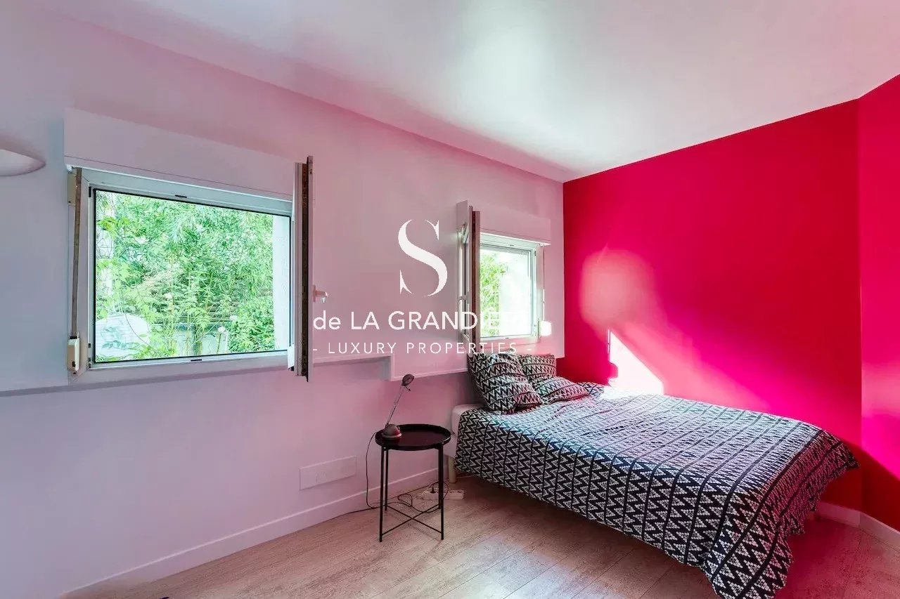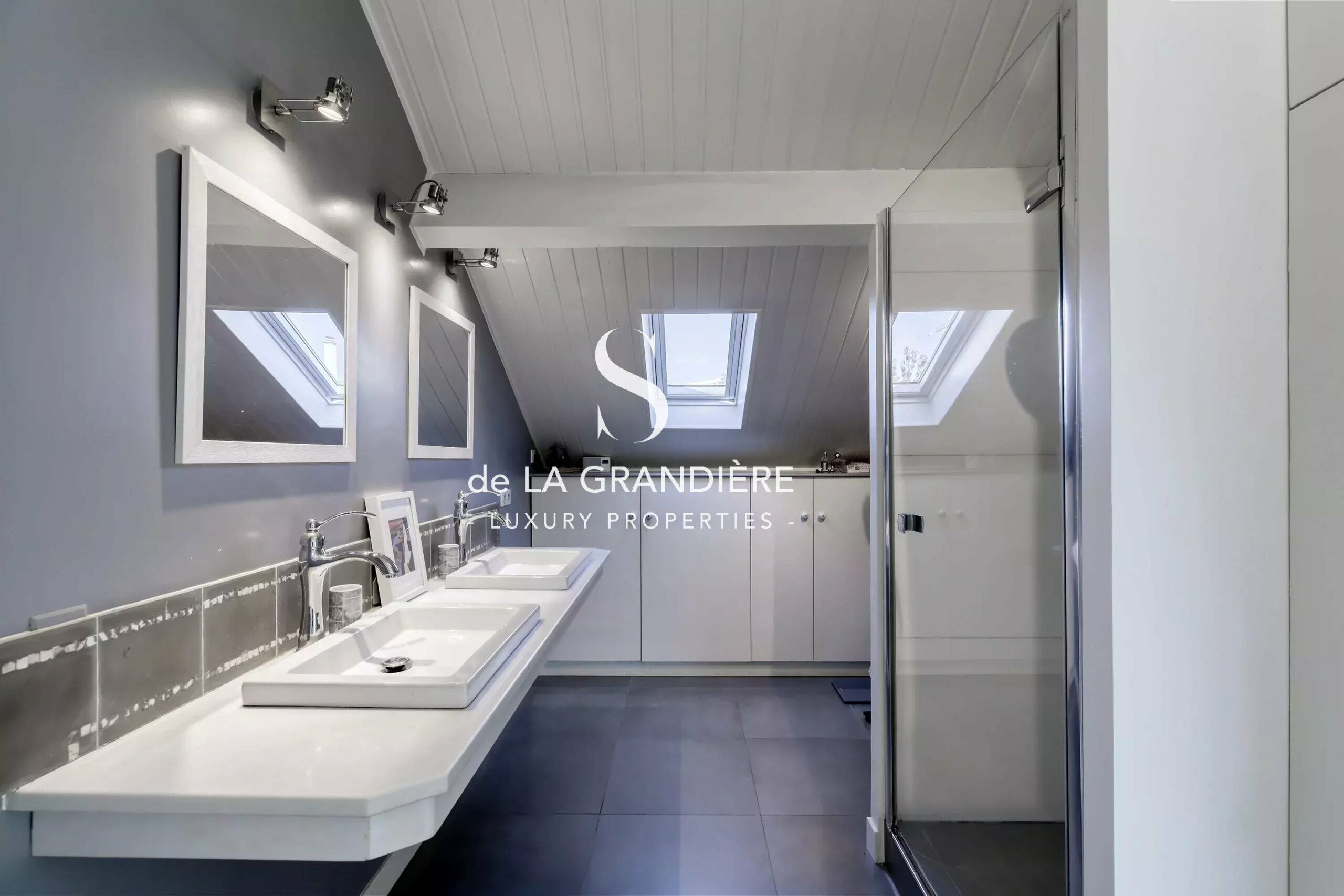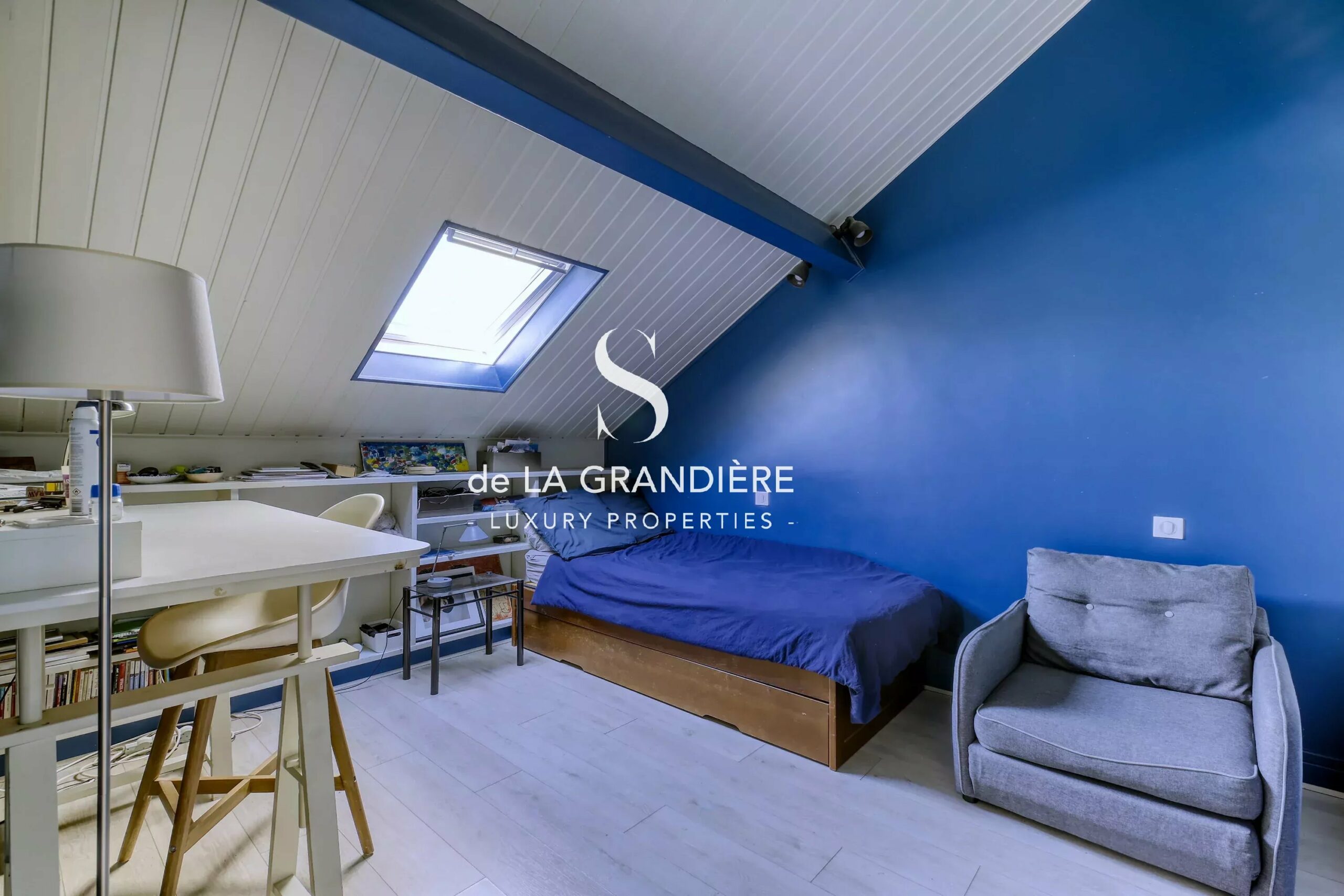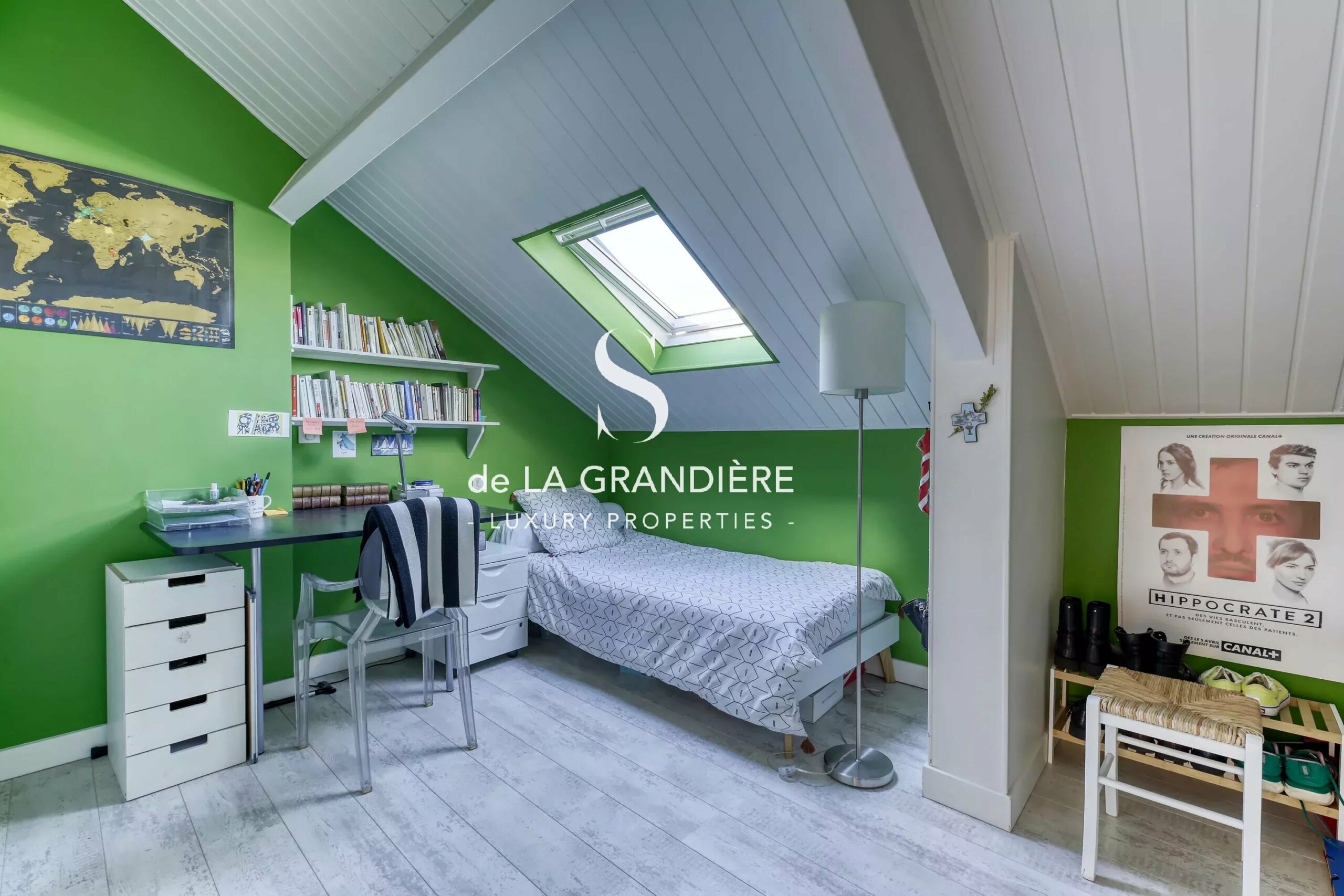 Spacious, comfortable 6-bedroom 250 m² family home. Absolutely quiet and unoverlooked in the residential neighborhood of Ile Saint Germain, near Boulogne-Billancourt. Bathed in light thanks to its South/South-West orientation, this house offers a pleasant living environment and multiple outdoor spaces: garden, terrace and balcony. Ideal layout on 3 levels. Main level: A spacious reception room of over 70 m² with a living room featuring a fireplace and a dining room opening onto 2 terraces. Separate fitted and equipped kitchen, separate WC. 1st floor: Large master suite with en suite bathroom, 2 children's bedrooms, shower room, separate WC, numerous built-in cupboards in the bedrooms for easy storage. First floor: A living/family room opening onto the green garden, 3 bedrooms, a bathroom, a shower room, 1 office area.