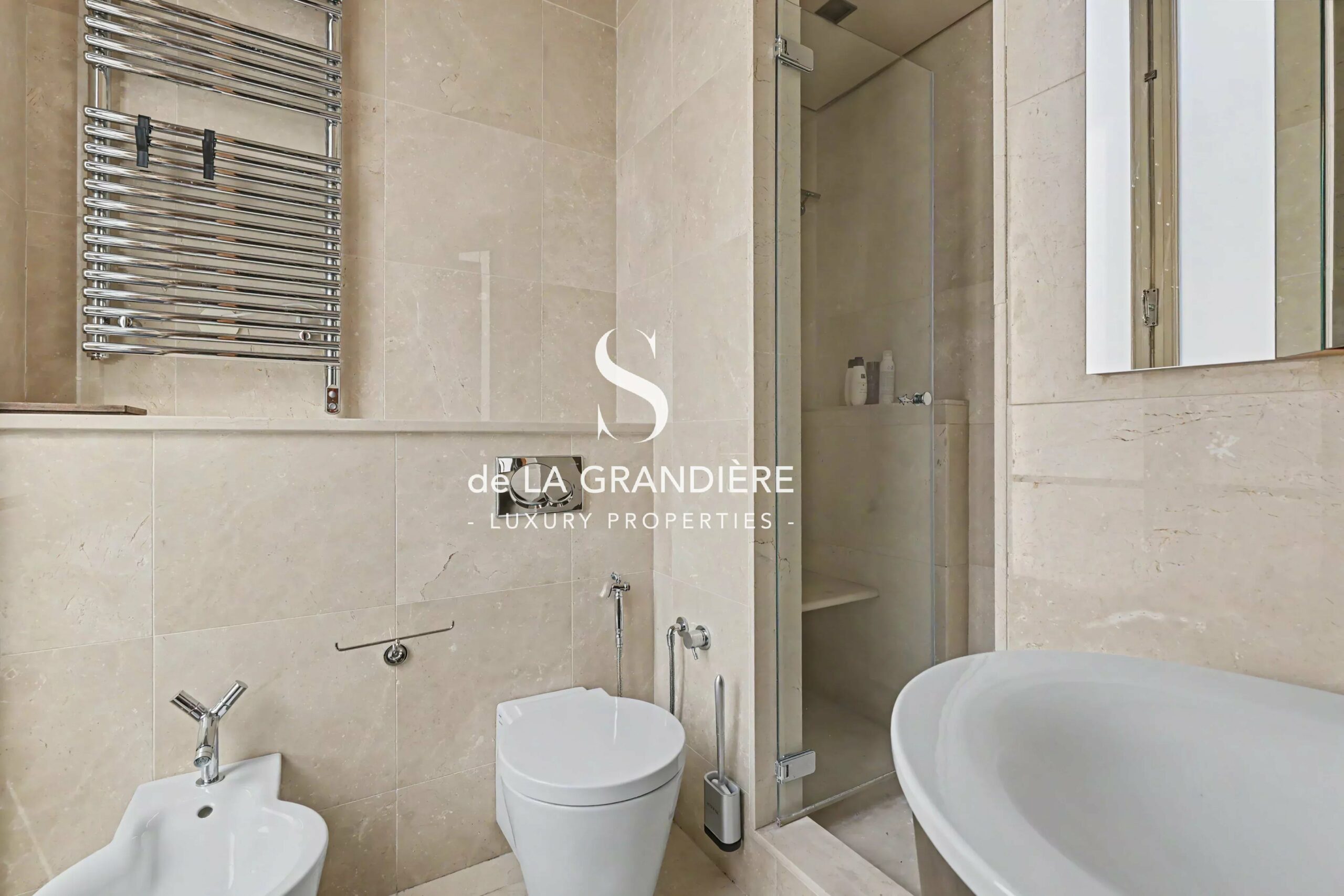 Features and modern comfort: The perfect blend of old-world charm (Hungarian point parquet, marbles, moldings, double-glazed wood windows) and modernity (integrated air conditioning, individual heating).