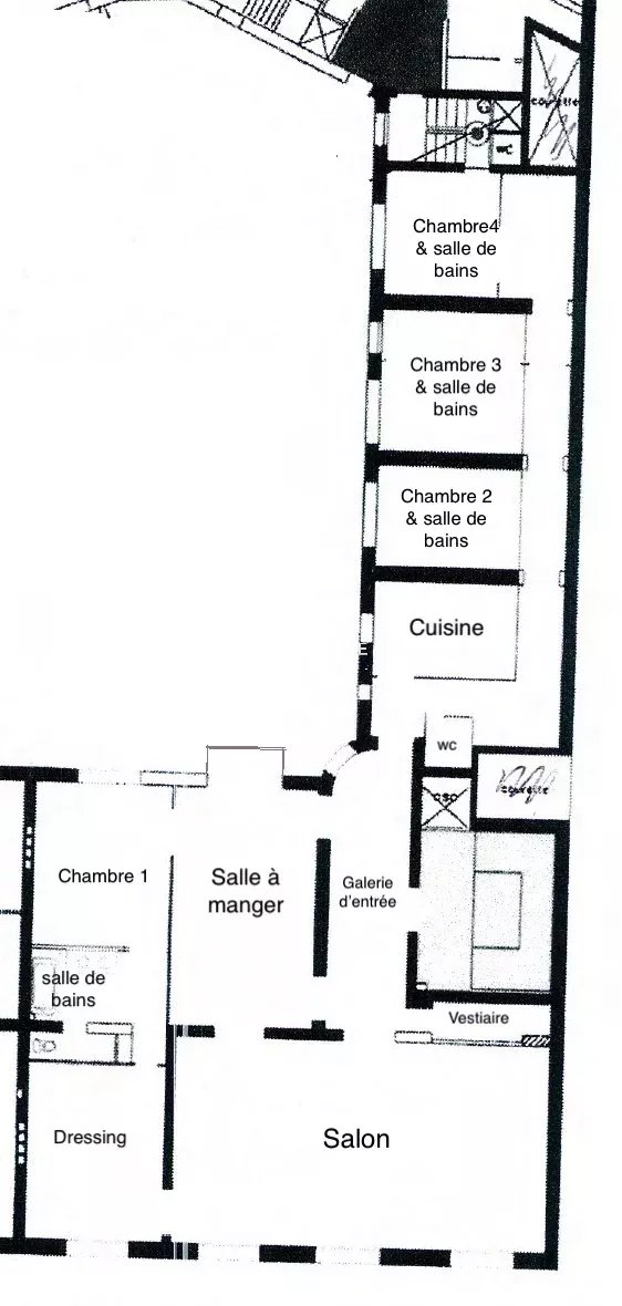 Three other suites located in absolute calm over a beautiful courtyard, each with its own bathroom, sanitary facilities, and built-in storage.