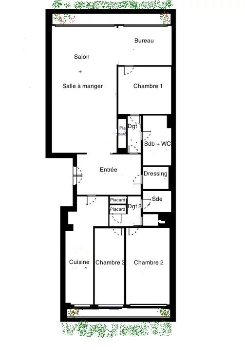 Situé au 1er étage et bénéficiant d'une belle hauteur sous plafond (2,93 m) il se compose d'une entrée desservant côté Ouest une grande pièce de vie de 47 m2 donnant sur un large balcon filant avec coin bureau, une chambre parentale séparée par une verrière industrielle avec dressing et salle de bains avec WC. Côté Est avec vue sur un grand jardin paysagé, 2 chambres donnant sur un large balcon filant, un WC indépendant, une salle de douche, une cuisine séparée avec coin repas. Nombreux rangements. 2 caves complètent ce bien. Parking possibles en location.