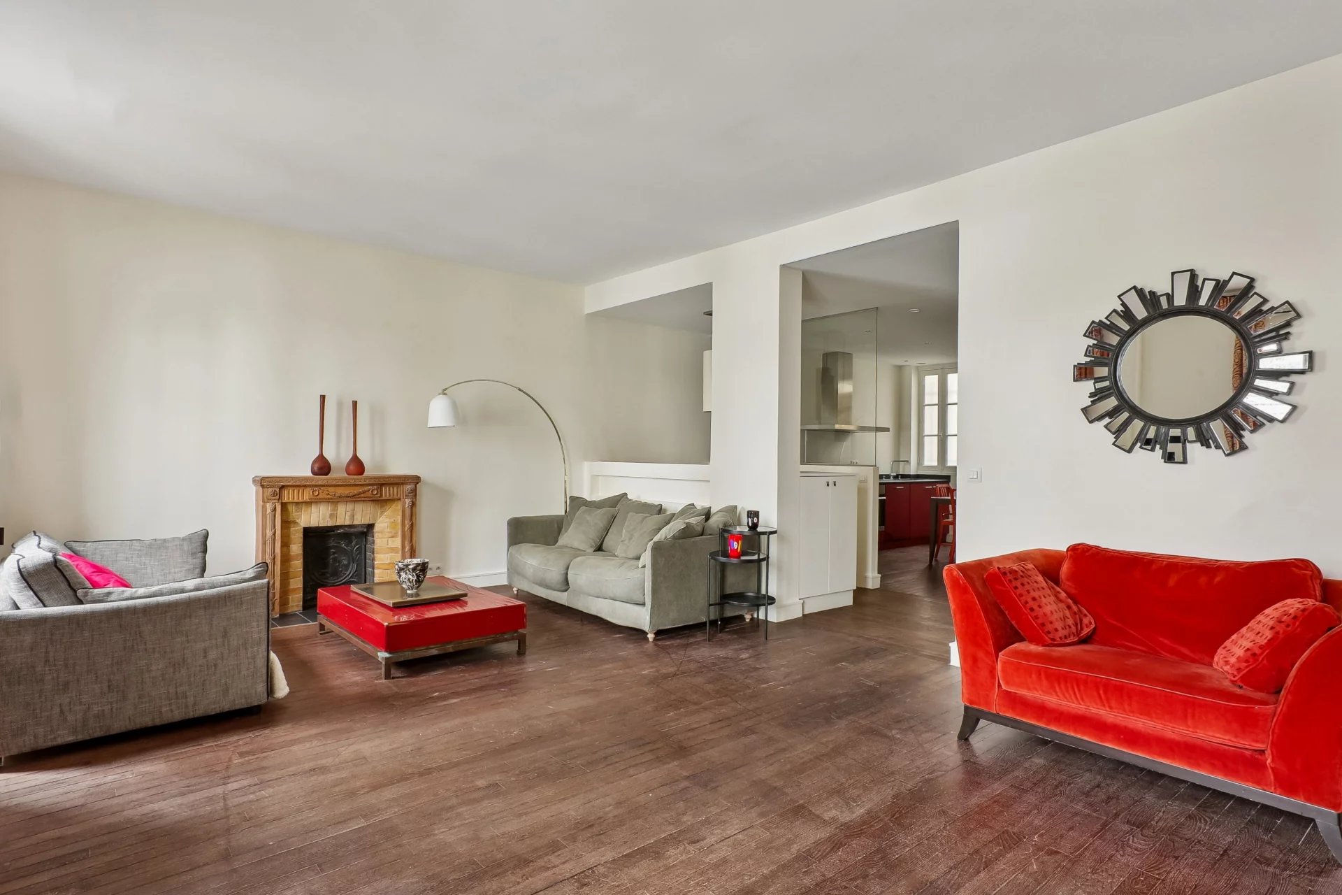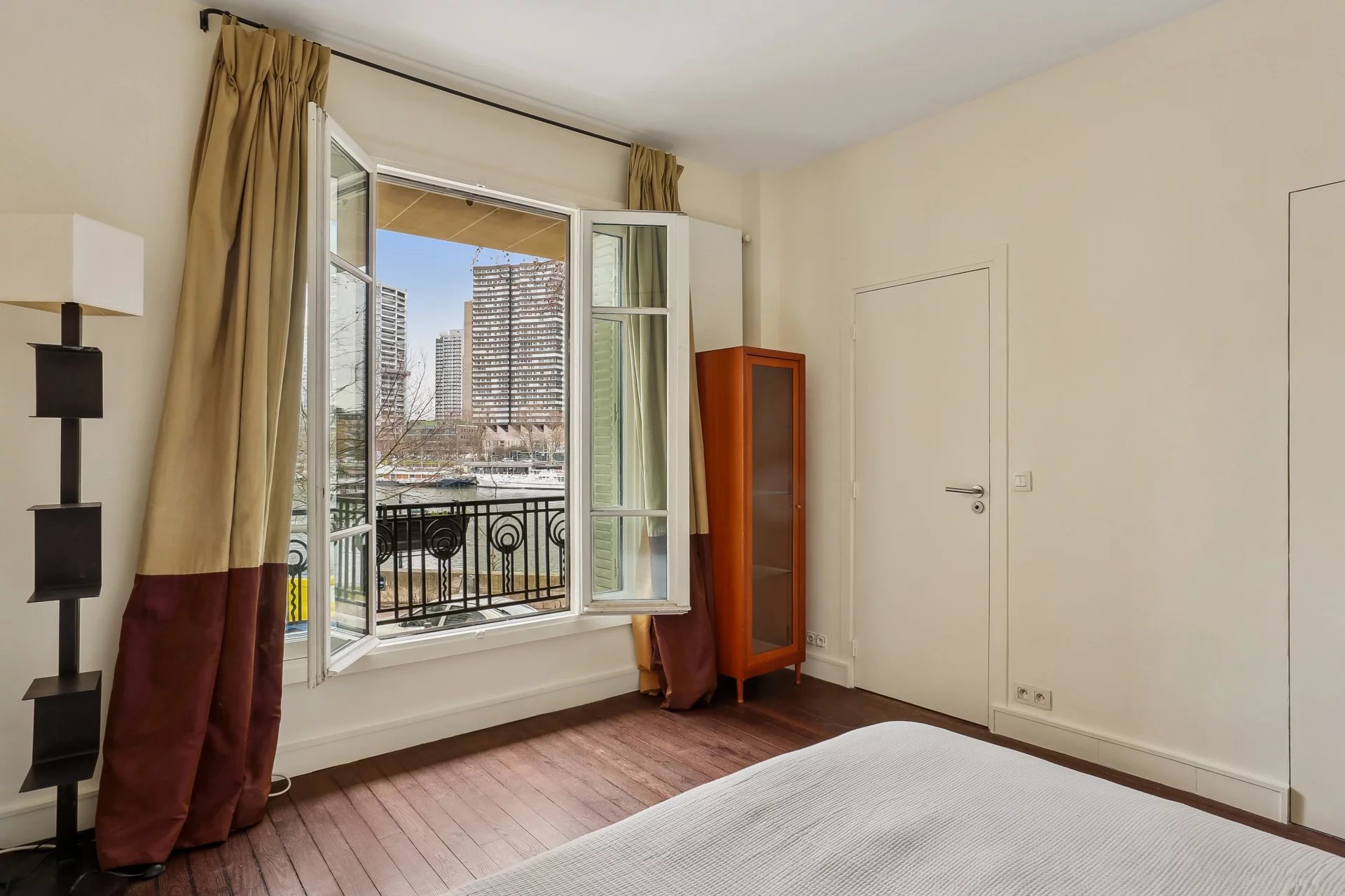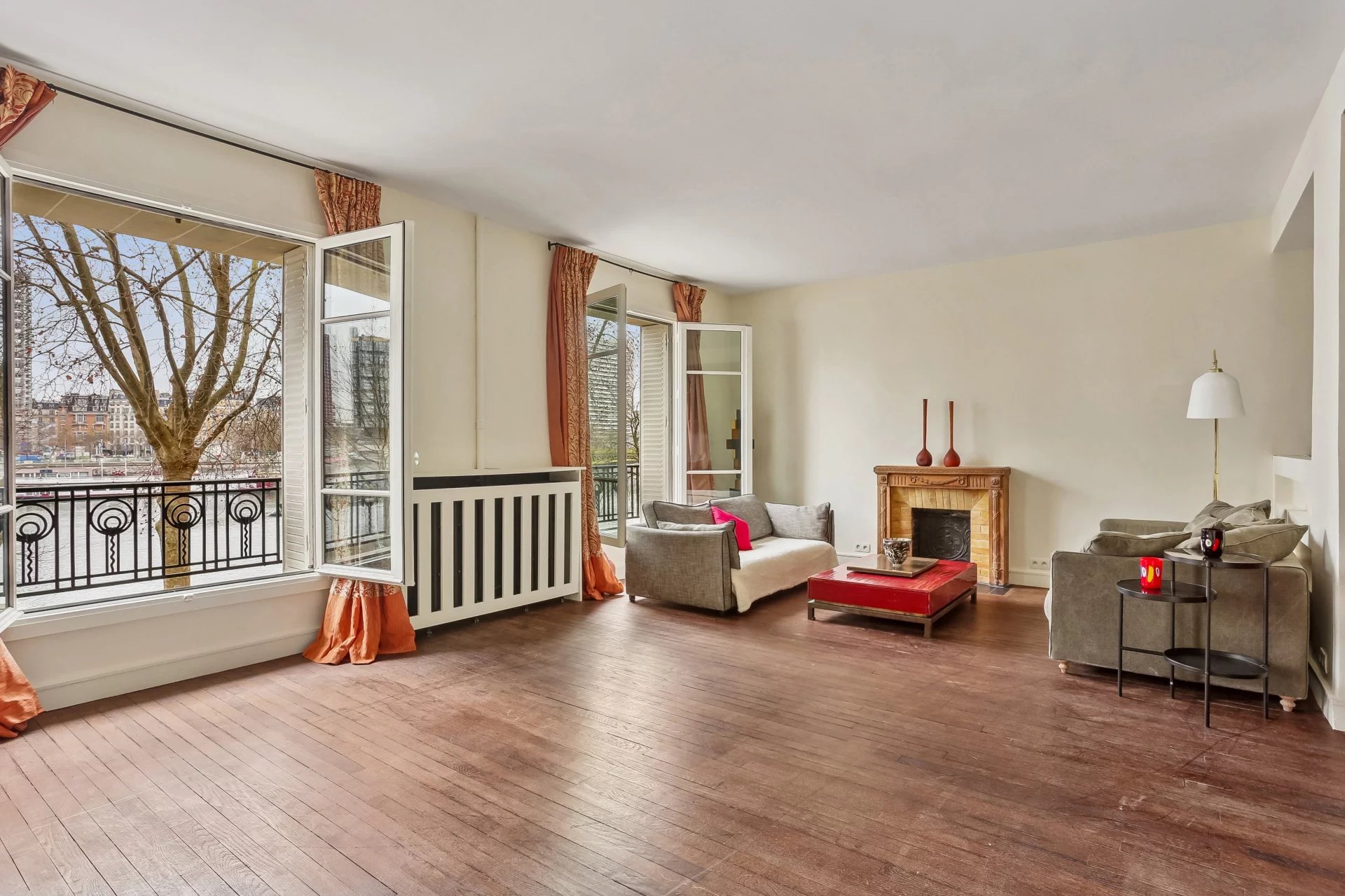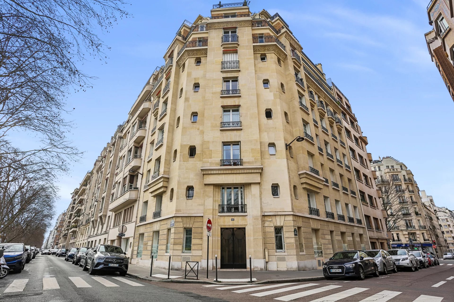 Auteuil Nord - Seine. Comme une maison, au sein d’un bel immeuble en pierre de taille 1930, récemment ravalé, en angle, surplombant la Seine, cet appartement ensoleillé, distribué selon un plan sans aucune place perdue, se déploie sur deux niveaux.