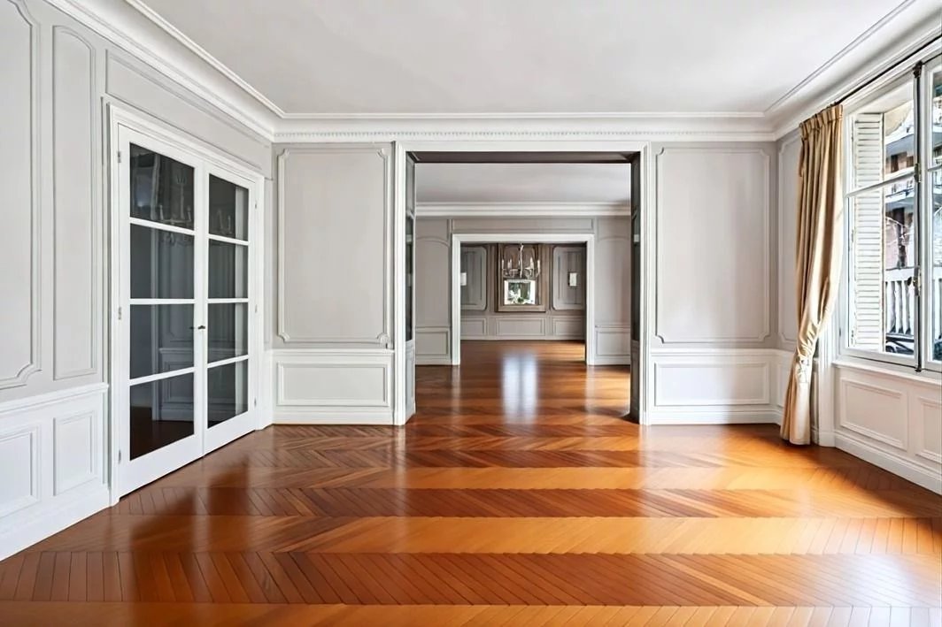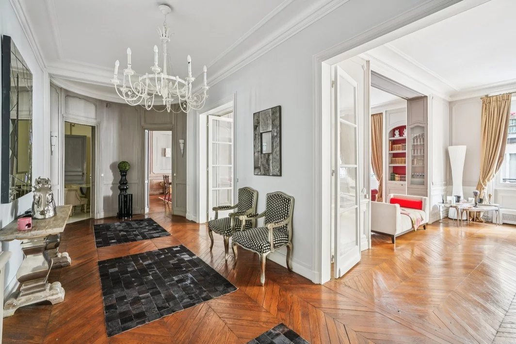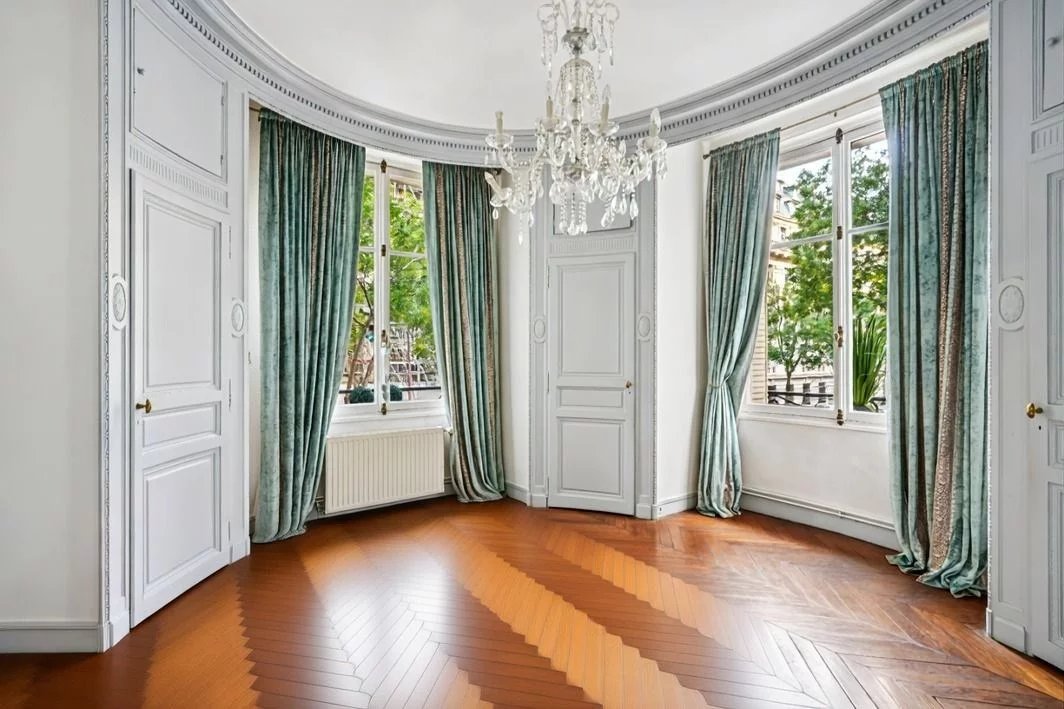 À deux pas du Trocadéro, dans un élégant immeuble en pierre de taille datant de 1925, cet appartement d’angle de 242 m² incarne l’élégance parisienne dans toute sa splendeur.